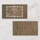 Um cartão de visita com o meu design de roteiros roscados num fundo de madeira.