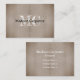 Personalize e personalize o cartão de visita elegante com suas informações de negócios e inicial e nome. Foto de um grão de madeira castanho claro com textura legal e elegante.
