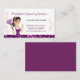 Adicione faísca à sua marca de limpeza com este cartão de visita brilhante roxo, com uma caricatura divertida, com um design de montadora de desenho animado. Perfeito para serviços de limpeza de casas, empresas domésticas e organizadores de casas profissionais, este cartão atraente combina charme com profissionalismo. Os tons roxos vibrantes e o trabalho de arte inspirado em brilho criam uma primeira impressão memorável, enquanto o layout personalizável inclui espaço para seu nome, informações de contato e detalhes de serviço. Ideal para fornecedores de limpeza residenciais e comerciais que procuram se destacar com um toque divertido e feminino.