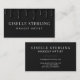 Faça uma impressionante primeira impressão com este dramático cartão de visita preto-a-preto com detalhes suaves e brilhantes. Projetado para maquiadores que querem irradiar um profissionalismo ousado com uma borda escura e moderna.