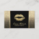 Cartão De Visita Makeup Artist Chic Lábios preto moderno e Dourado