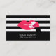 Artista Makeup Modern Black & White Stripes Red Lábios Cartões de visitas.