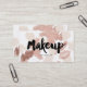 Um cartão de visita moderno, na moda, de maquiagem, com tipografia moderna de pincel, em preto, sobre uma folha de ouro falso, padrão de pincéis cor-de-rosa pincelada e brilhante, cor-de-rosa, e um lábios. Se precisar de alguma personalização, não hesite em me contactar