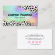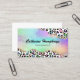 Cartões de visitas coloridos e engraçados com um fundo de impressão leopardo multicolor, um centro de massa arco-íris com bordas douradas, seu nome, título, detalhes de contato e ícones das mídias sociais. Os ícones podem ser removidos clicando em personalizar e, em seguida, toque para personalizar ainda mais.
