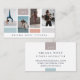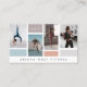 A frente do cartão de visita apresenta quatro layout de colagem de fotos com vários design de grade de caixas de cores. Personalize com suas fotos, monograma e nome comercial. O verso apresenta as informações de contato, o monograma e o nome comercial em um layout limpo e mínimo. Você pode personalizar o tamanho do texto, a fonte, as cores e a cor do plano de fundo para se adequar à sua própria preferência pessoal. Design por Moodthology Papery.