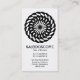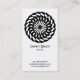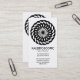 Um modelo de cartão de negócios na moda com um atraente motivo geométrico redondo. Detalhes principais da empresa na frente, com nome e contato pessoal na parte traseira.