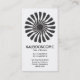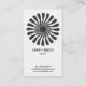 Um modelo de cartão de negócios na moda com um atraente motivo geométrico redondo. Detalhes principais da empresa na frente, com nome e contato pessoal na parte traseira.