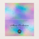 Cartão de visita de fundo holográfico bonito e falso brilhante para pequenos e grandes proprietários de empresas. O design apresenta um moderno, script, tipografia, fontes de tendências e um fundo simples mas com efeito. Perfeito para um belicista ou dono de um salão de beleza, maquiador, criador de fantasias, cabeleireiro ou cosmetólogo." Basta adicionar seu logotipo, nome e detalhes comerciais a esta placa brilhante e moderna clicando no botão "Personalizar" acima