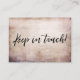 Mantenha seus amigos e familiares atualizados com seu novo endereço usando esses cartões de compartimento simples e rústicos. Com um fundo coberto por uma textura em relevo angustiado, ele apresenta gráficos de tipografia bonito que dizem "Nós nos movemos" na frente e "Mantenha-nos em contato!" na parte de trás. Essas frases foram renderizadas em uma fonte moderna, casual, escrita à mão. Use os campos modelo para adicionar todos os seus próprios detalhes para personalizar este design para seu próprio uso. 90 //