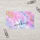 Esta cartão de visita de artista giro e glamourosa é perfeita para uma empresária na moda e profissional moderna. Ele apresenta pingos grossos de brilho amarelo-arco-íris de cor veloz com impressão falsa sobre um fundo holográfico iridescente. A tipografia é uma elegante escrita cursiva com uma fonte serif moderna a corresponder. O esquema de cores inclui rosa, pêssego, azul, roxo, amarelo e coral. É chic, bonito, exclusivo e luxuoso; a maneira perfeita de anunciar sua empresa e estilizar seu marketing e material de propaganda para seus clientes. ***NOTA DE DESIGN IMPORTANTE: Para qualquer solicitação de design personalizada, como solicitações de correspondência de produtos, alterações de cor, mudanças de posicionamento ou qualquer outra solicitação de alteração, clique no botão "mensagem" ou envie um e-mail ao designer diretamente em lafemme.art@gmail.com. Você pode até enviar um e-mail para ela solicitando um design completamente personalizado e novo.