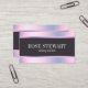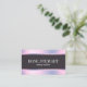 design de cartão de visita moderno com textura metálica falso holográfica, banda púrpura escura e letra de caligrafia elegante.