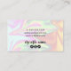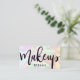 cartão de visita de maquiagem fantástica, com textura holográfica colorida e fonte elegante de caligrafia.