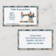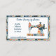 Este cartão de visita para costurar e colorido artesão é impresso com uma máquina de costura de retalhos e sotaques de borda que combinam sotaques. Texto em azul escuro. Personalize todo o texto frente e verso no formato simples do Zazzle on-line.