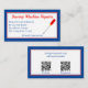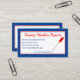 Um cartão de visita moderno para costurar especialistas em reparo de máquinas. O design mostra uma chave de fenda pequena e uma borda azul e vermelha. Ideal para pequenas empresas de reparação, como computadores, telefones celulares, eletrônicos e muitas outras. Adicione os detalhes de sua empresa para um na moda, cartão de visita minimalista moderno. Os detalhes de sua empresa e dois códigos QR podem ser adicionados facilmente ao fundo.
