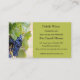 Essa cartão de visita apresenta uma foto de uva em uma videira à esquerda e à direita são os detalhes do negócio. No verso há um campo para informações adicionais. O texto em ambos os lados é editável para alterar os detalhes, assim como o estilo, o tamanho e a cor da fonte. A cor de fundo em ambos os lados também pode ser alterada. Aproveite o seu novo Cartão de visita de adega editável!
