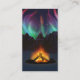 Em um vale coberto de neve em uma noite gelada no morto do inverno uma fogueira salta para cima para espelhar as luzes do norte enchendo o céu acima das montanhas distantes.