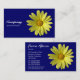 Um cartão de visita com um motivo de fotografia margarida amarela. Nome comercial etc. na frente com outros detalhes no verso com o mesmo motivo e estilo.