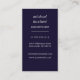 Promova seus serviços de restauração, padaria, restauração ou chef pessoal com esses cartões de visitas elegantes em azul e branco marinho. Apresentando uma silhueta de faca, garfo e uma colher de branco sobre um prato bege natural angustiado, com duas linhas de texto personalizado por baixo, em caracteres clássicos. Adicione seus detalhes e contato no verso em branco sobre um fundo azul contrastante.