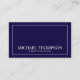 Marinho clássico profissional Azul e branco com as suas informações no estilo de fonte de serif branca e cinza clássico com borda de retângulo branco.