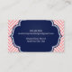 Cartão De Visita Marinho de crachá coral de padrão herringósico da