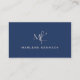 Cartão De Visita Marinho de prata personalizado elegante, monograma