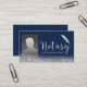Cartões de visitas de Fotografias do Agente de Assinatura de Empréstimo Notário Marinho Blue Modern Silver Glitter.