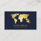 Faça uma declaração ousada com este viagem moderno cartão de visita com um fundo azul marinho e um elegante mapa do mundo do ouro. Perfeito para agentes de viagem, planejadores de turnê, personalize com seu nome e título para criar uma impressão refinada e na moda.