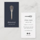 Promova seus serviços de padaria, restauração ou chef pessoal com esses cartões de visitas verticais elegantes em azul rico marinho com sotaques dourados. Design apresenta uma ilustração de uísque da cozinha em folha de rosa dourada falso, com duas linhas de texto personalizado por baixo. Adicione seus detalhes de contato de negócios do chef ou da restauração ao reverso, juntamente com seu nome de usuário de mídia social. Para revelar opções adicionais de ícone de mídia social, abra a ferramenta design.