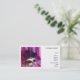 Cartões de visitas com uma foto de uma máscara roxa do mascarada com penas e brilho.