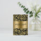 Tons de ouro brilhante elegantes, moldam os damascos florais com fundo preto. Do lado há um bar dourado para nome e o verso tem preto como fundo de texto. Se precisar de assistência para personalizar este ou qualquer um dos meus designs, envie-me um e-mail com a sua solicitação. É sempre grátis.