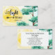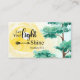 Cartão de visita com uma escritura de aspas inspiradora retrata um simples fundo aquoso com uma árvore, céus azuis e um sol amarelo a brilhar. Ele apresenta a Bíblia Verse Matthew 5:16, "Deixe sua luz brilhar."