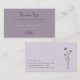 Advertise for your business with these clean and elegant business cards. The hand drawn botanical sprig and wildflowers adds a subtle touch while making your business name the main attraction. These muted colors are calming and communicate a sense of trust and comfort to your potential client. The front is mauve and the back is an off white with a hint of purple. These are the perfect way to get your information into the hands of your market!