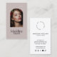 Elevem a sua marca de beleza com a nossa design de cartão de visita chic. Apresentando um aspecto e um sentimento editorial de alta-moda e na moda, com uma foto arquivada e personalizável, esta design é uma declaração impressionante que certamente atrai a atenção. Personalize com seu nome ou marca na frente e mostre suas informações de contato e detalhes de mídia social na parte traseira. É mais do que uma carta — é uma introdução glamourosa à sua beleza proeza. Design © 1201AM Design Studio | www.1201am.com
