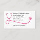 Cartões de visitas temáticos do Oncologista Médico desenhados com um gráfico estetoscópico cor-de-rosa representando a luta pelo Cancer em um simples modelo editável para um escritório de Oncologia.