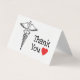Este cartões de agradecimentos apresenta texto preto junto com um coração vermelho e o símbolo médico caduceus. É perfeito para agradecer a um profissional de saúde na sua vida, seja um médico, enfermeiro ou qualquer outra pessoa que ajude a manter o hospital ou consultório médico em funcionamento!