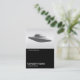 Um design modelo de cartão de negócios com uma metade inferior preta de borda branca. O design frontal inclui uma foto ou um trabalho de arte na metade superior. O mesmo tema é repetido no verso sem a imagem, permitindo espaço para outros detalhes e mais personalização. O motivo dos três quadrados usado como elemento decorativo no verso é de uma das fontes de imagem úteis de Zazzle e pode ser usado como recurso decorativo ou substituído por seu próprio logotipo ou decoração.
