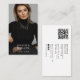 Adicione sua foto e seu código QR a este simples modelo de design. Um simples cartão de visita profissional. Ícones das mídias sociais incluídos no verso. Na moda e tendências. Uma foto profissional adequada para muitas ocupações. Fotógrafo, modelo, designer interior, estilista ou qualquer ocupação que requeira uma foto de na moda. Substitua esta foto de amostra marcadora por sua própria foto criativa.