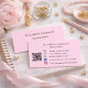 Uma cor de fundo cor-de-rosa pincelada. Personalize e adicione seu nome e os detalhes. Adicione o URL/link do seu site ao código QR. Ícones do Facebook e Instagram.