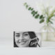Design de Cartão de visita profissional minimalista simples em preto e branco com código QR no verso. Na frente está o lugar para sua foto — sua imagem aparecerá em preto e branco. Na frente está um lugar para o seu nome escrito como se fosse uma assinatura no canto. Observe que qualquer um dos ícones sociais pode ser excluído do modelo se não for necessário.
