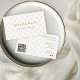 Esse elegante cartão de visita com verificação apresenta um fundo leve e fino com texto dourado. Adicione o nome da sua empresa e o slogan à frente da apresentação de um fundo elegante com uma fonte serif elegante. Seu endereço comercial e informações de contato, incluindo mídias sociais e ícones, e código QR no verso. Perfeito para marcas pessoais, ramos e muito mais.