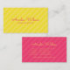 Este cartão de visita de mídia social moderno colorido apresenta um padrão de listras amarelas frente e um padrão de listras cor-de-rosa para trás. É ideal para blogueiros comidas, padeiros, blogueiros estilosos, estilistas, consultores, escritores, designers de interiores, etc ou apenas para qualquer pessoa que queira uma design de na moda colorida e uma maneira de deixar as pessoas que encontram na vida real saberem como encontrá-las e seu trabalho/portfólio online e nas mídias sociais. É fácil personalizar; você pode substituir facilmente o texto do marcador de posição para adicionar suas próprias informações. Para obter mais opções, como alterar a fonte e seu tamanho, clique no botão "Personalizar". *Observe que a Marca d'água Zazzle que aparece na visualização de zoom NÃO aparecerá no produto impresso final © Rosewood e Citrus