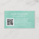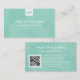 Um simples e chic boutique cartão de visita de mídia social com um logotipo moderno de um monograma de moda em um fundo de aquarela verde-menta. Personalize este design profissional minimalista adicionando seus sites de mídia social e o Código QR.
