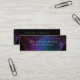 Mancha colorida de tinta moderna em mini cartões de visitas pretos. O estilo e a cor da fonte do texto podem ser personalizados.