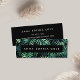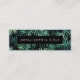 Cartões de visitas elegantes em um tamanho de mini tamanho único que economiza papel têm uma vibração tropical chic. Personalize a frente com seu nome ou nome comercial em um fundo de folhas botânicas da selva verde vibrantes e adicione suas informações de contato de cheio à parte de trás em letras brancas modernas em um fundo preto nítido. Uma escolha única e elegante para qualquer ocupação; exemplo mostrado para planejadores de eventos.