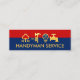 Um cobrir vermelho e azul com camadas apresenta um móvel dourado. Cada ícone de ouro pode representar alguns dos serviços que você pode oferecer. Por exemplo, a cerca de pinças de árvores de ouro pode representar jardinagem, o pincel de martelo para remodelação domiciliar, pintura, a lâmpada de ferramentas para obras elétricas e, por último, a torneira de ouro para canalização. Cada descrição é deixada à sua própria interpretação. Perto da base, você tem o nome do negócio. No verso, em um cobrir azul, à esquerda está um logotipo dourado "ferramentas para uso doméstico" que você pode usar junto com seu nome prestigiado e seus detalhes de contato. Um cartão de excelente para o trabalhador e para os que trabalham no setor da construção. Todas as letras estão em ouro falso. #handyman #construção #homconstrução #construção #empreiteiro #construtor #homerepair #handymantools #empreiteiro #zazzlemade