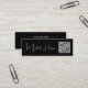 Mini cartão de visita profissional preto mínimo com seu nome em um moderno script branco de assinatura. Adicione o endereço de URL do seu site para criar um código de QR digitalizável. No verso, adicione qualquer texto adicional (como email, números de telefone, nome firme e endereço de correspondência).