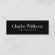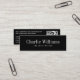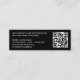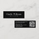 Mini cartões de visitas pretos elegantes com seu nome e informações de contato junto com um código QR.