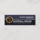 Andar nesta linha branca é um logotipo de tomada de energia dourada que você pode usar, à esquerda. Na parte superior do cartão está o seu nome prestigioso e o título de serviço com o nome comercial e os detalhes de contato perto da base.