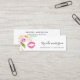 Os cartões de visitas florais elegantes apresentam um buquê de cor d'água pintada de pedônia e de flores rosa em tons pastéis de cor rosa pincel e verde primavera, acentuados com um par de lábios de cheio em cor rosa pétal. Personalize a frente com seu nome e título ou nome comercial e adicione seus detalhes de contato de cheio, incluindo links ou identificadores de mídia social, ao lado oposto.