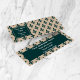Cartões de visitas elegantes, na moda e sofisticadas com fundo verde Fleur-de-Lis em natas. Design moderno e moderno, perfeito para o amante da carga heráldica.
